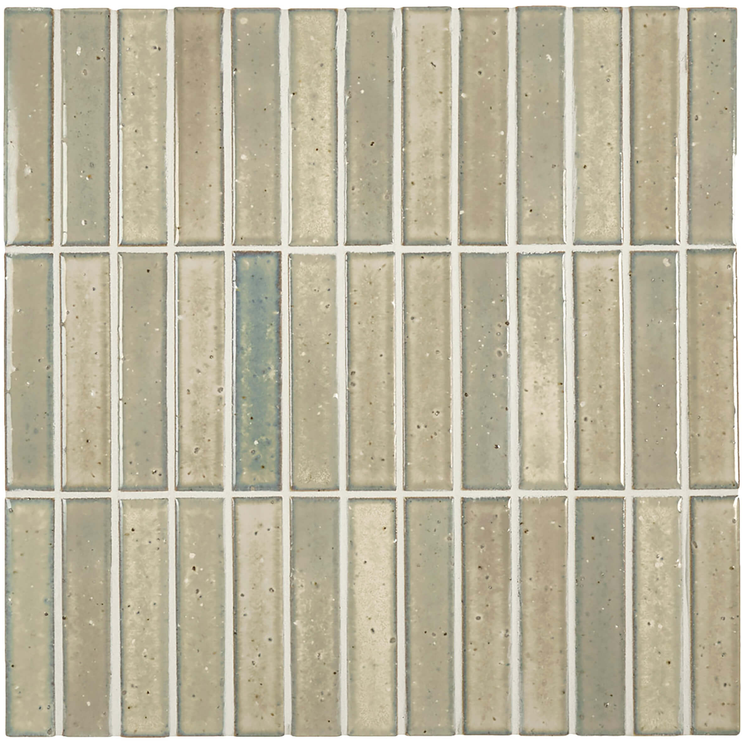Create elegant and refined surfaces with SUMO mosaics, featuring a distinctive green-toned Japanese glaze. This small mosaic is ideal for installation on curved surfaces, where a unique glaze with natural color variations is desired. These Japanese tiles are easy to install on walls in kitchens and bathrooms. The mosaics come mounted on mesh sheets measuring approximately 30x30 cm.