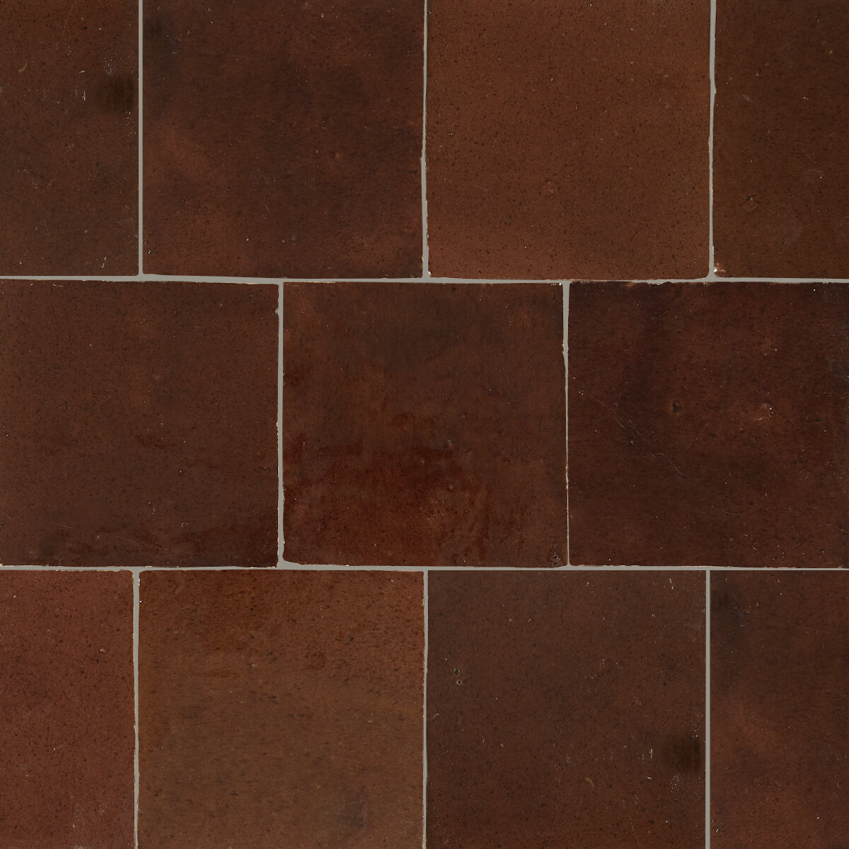 Deep glazes with multiple color variations from tile to tile. The centuries-old tradition of shaping, glazing, firing, and cutting Zellij tiles is still carried out by skilled artisans, entirely without modern tools and solely by foot and hand, as the clay is trampled and shaped. Expect unique glazes with a high degree of variation.
