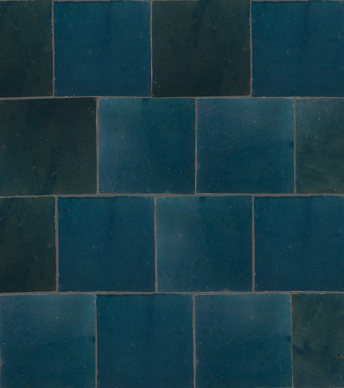 Deep glazes with multiple color variations from tile to tile. The centuries-old tradition of shaping, glazing, firing, and cutting Zellij tiles is still carried out by skilled artisans, entirely without modern tools and solely by foot and hand, as the clay is trampled and shaped. Expect unique glazes with a high degree of variation.