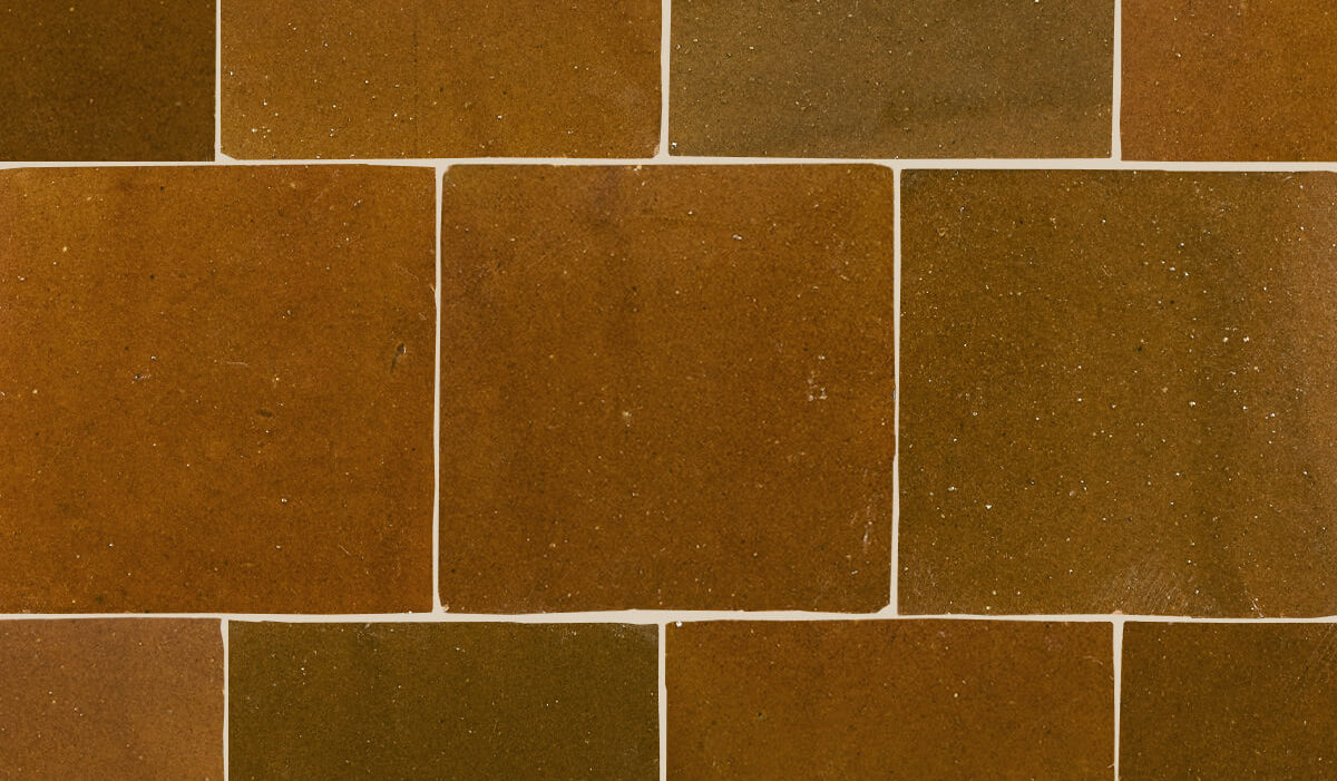 Deep glazes with multiple color variations from tile to tile. The centuries-old tradition of shaping, glazing, firing, and cutting Zellij tiles is still carried out by skilled artisans, entirely without modern tools and solely by foot and hand, as the clay is trampled and shaped. Expect unique glazes with a high degree of variation.