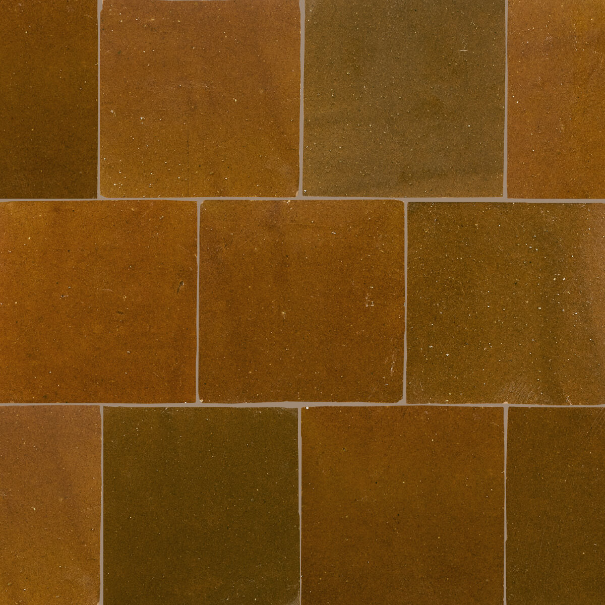 Deep glazes with multiple color variations from tile to tile. The centuries-old tradition of shaping, glazing, firing, and cutting Zellij tiles is still carried out by skilled artisans, entirely without modern tools and solely by foot and hand, as the clay is trampled and shaped. Expect unique glazes with a high degree of variation.