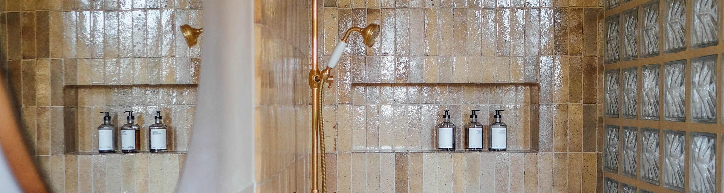Handmade Indian stoneware tiles crafted from local clay in a small factory in Gujarat, India. These high-quality Indian tiles feature deep glazes and delicate, beautiful imperfections in the surface. The tiles exhibit significant color variations due to being fired at over 1200 degrees Celsius for up to 36 hours. Pure craftsmanship.
