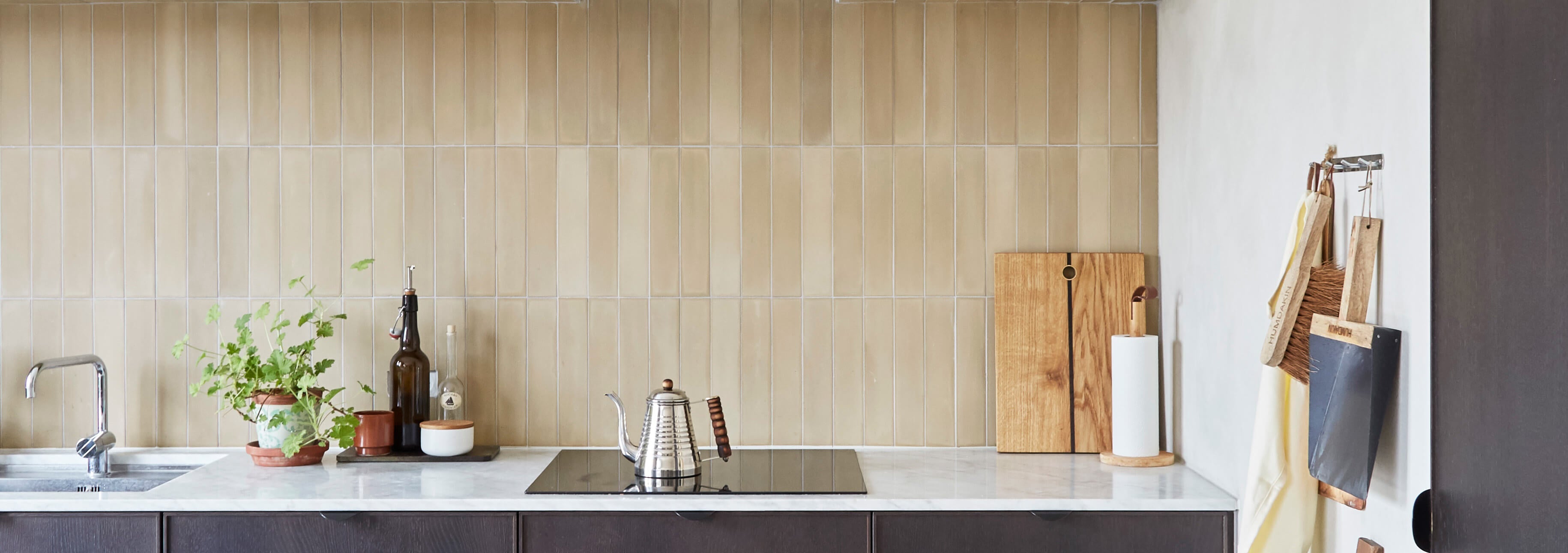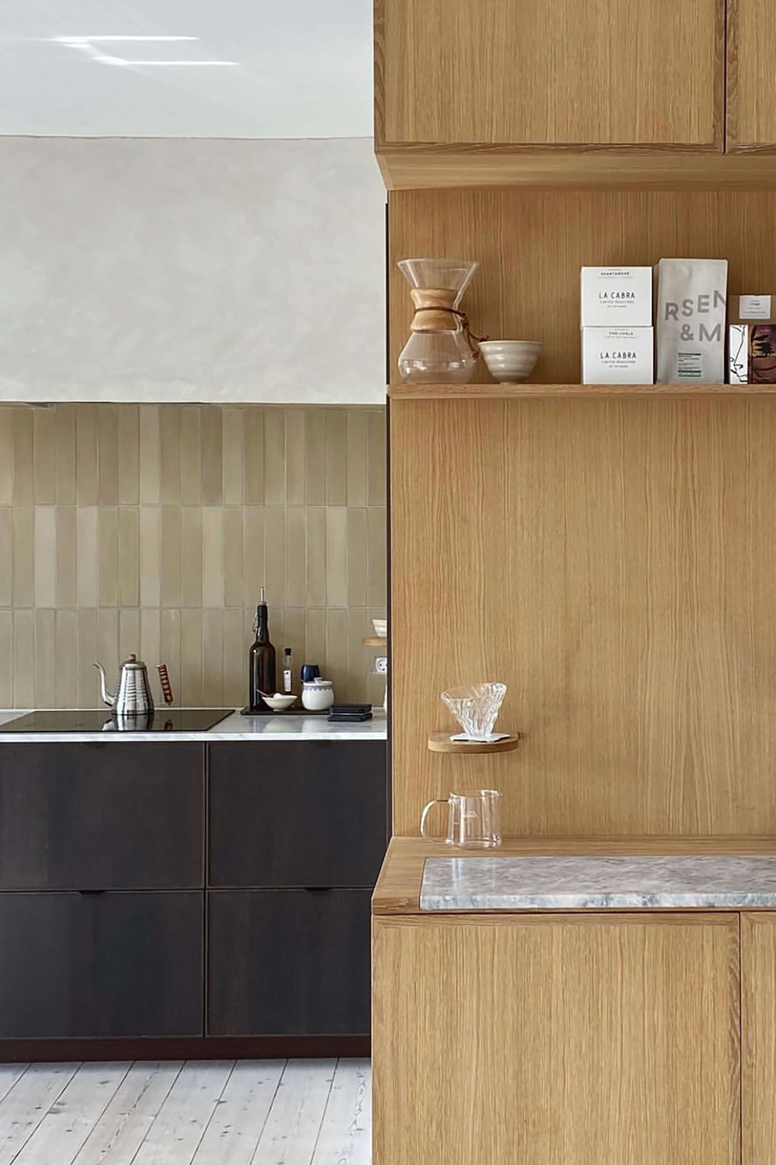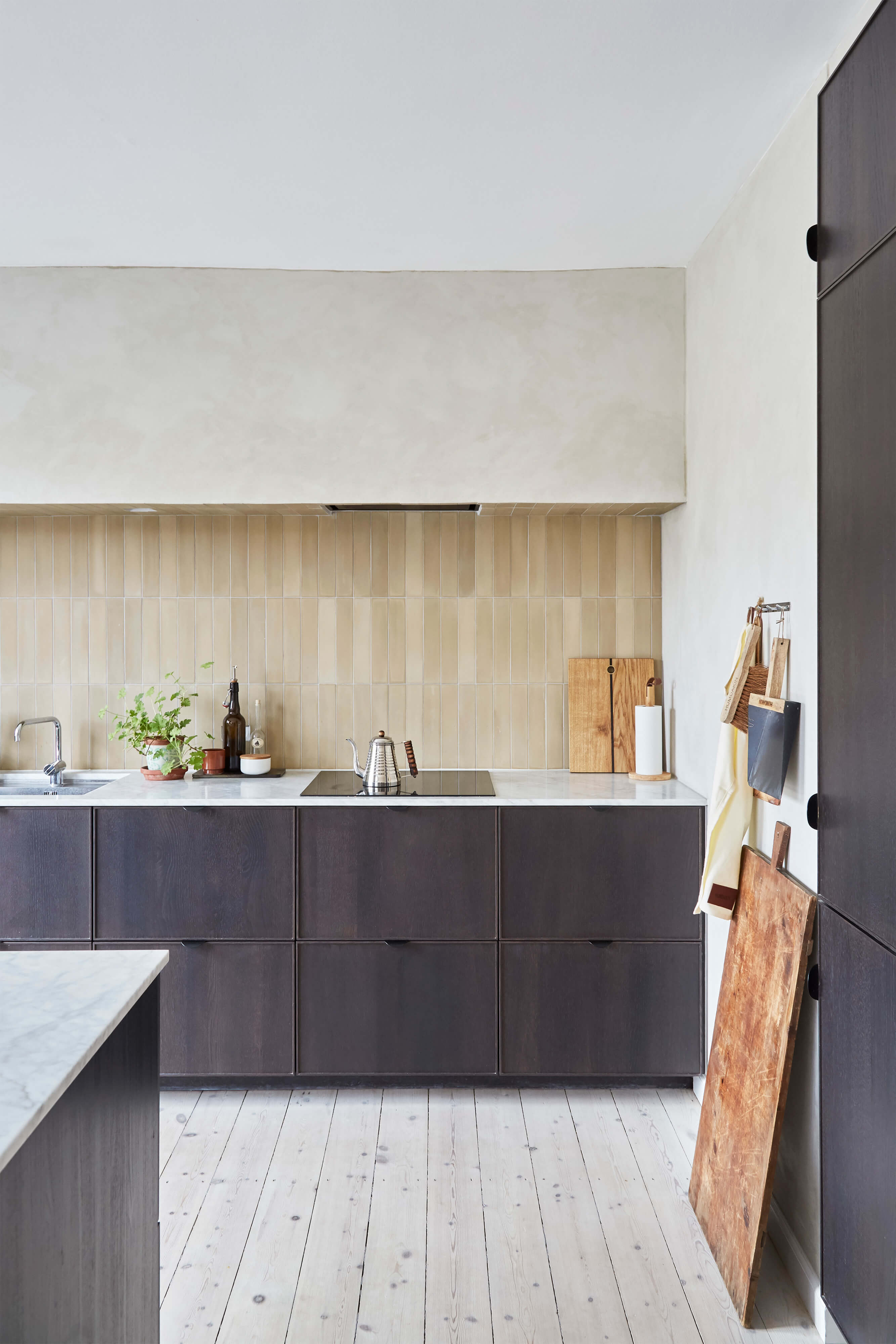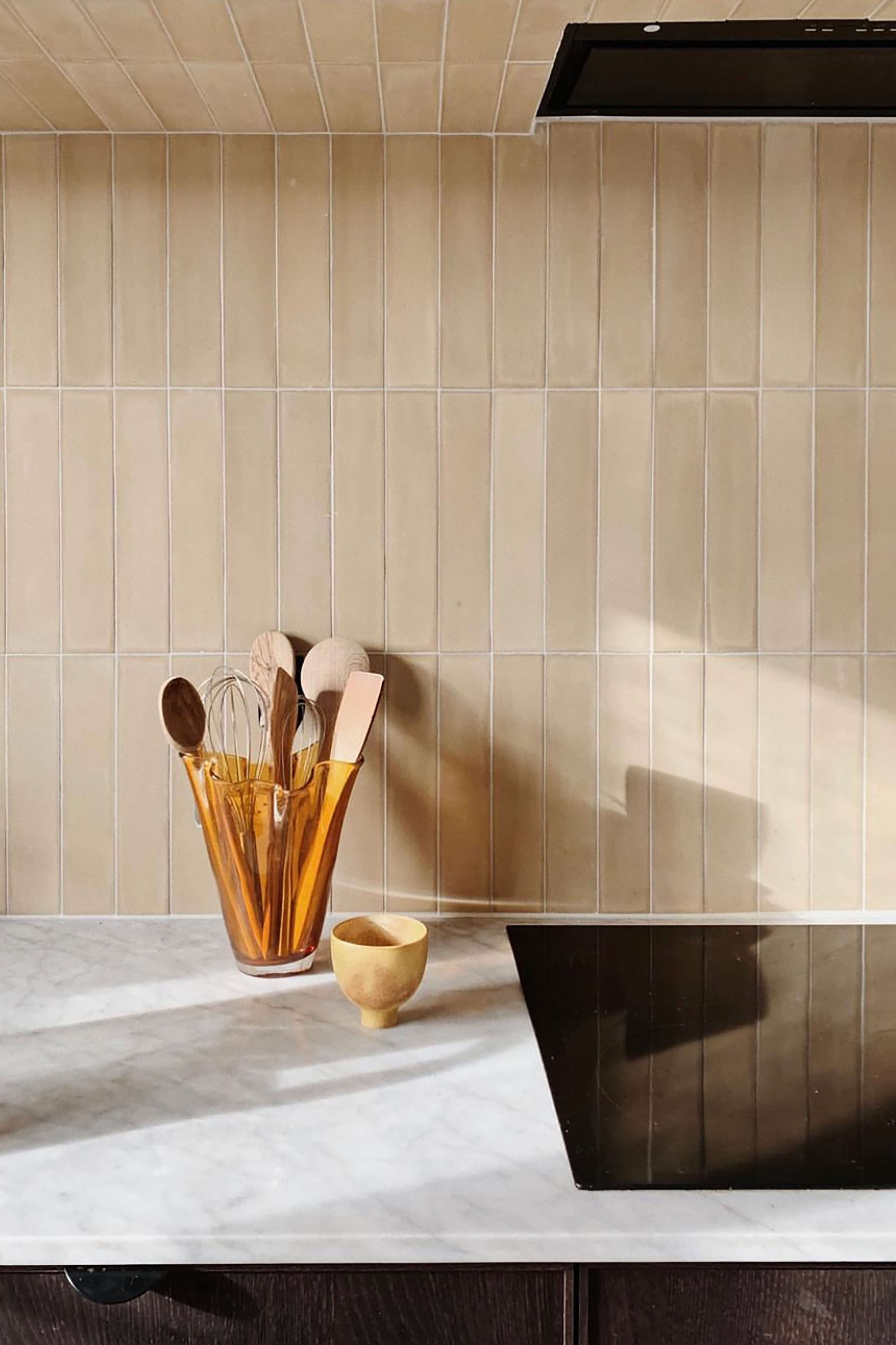 The ‘Ochre’ color of the handmade cement STIX tiles, strikes a perfect shade to the earthy tones in the town-house, and brings all the warm wooden surfaces together in a beautiful, earthy union.